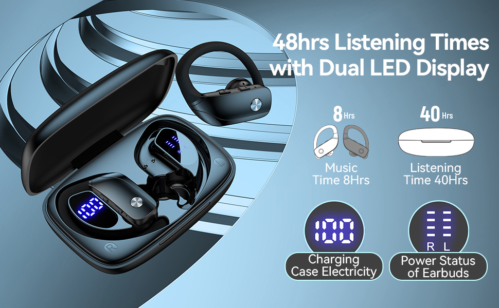 bmani Ear Buds Wireless Earbuds Bluetooth Headphones with 80H Playtime LED Display Case, Over-Ear Hook with Mic, Stereo Sound, Easy Button Controls, Sports Earphones for Running Workout Gym Black