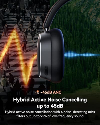 Experience immersive quiet with hybrid active noise cancelling technology that significantly reduces ambient noise for deeper focus and relaxation. Powered by a high-speed processing chip and multi-mic noise detection system, these over-ear headphones respond instantly to surrounding sound changes. Switch effortlessly between ANC and Transparency Mode to block distractions or stay aware of your environment whenever needed.