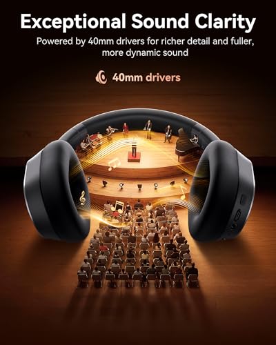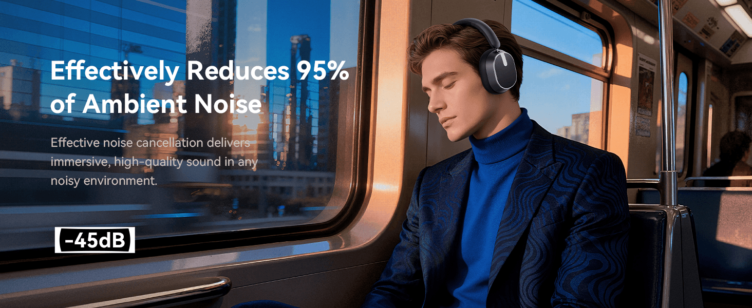 Equipped with 40mm dynamic drivers and refined acoustic tuning, these wireless headphones deliver powerful bass, balanced mids, and detailed highs for an engaging HiFi listening experience. The integrated 5-microphone ENC system intelligently filters background noise during calls, ensuring your voice remains clear and natural in meetings, gaming, or daily conversations.