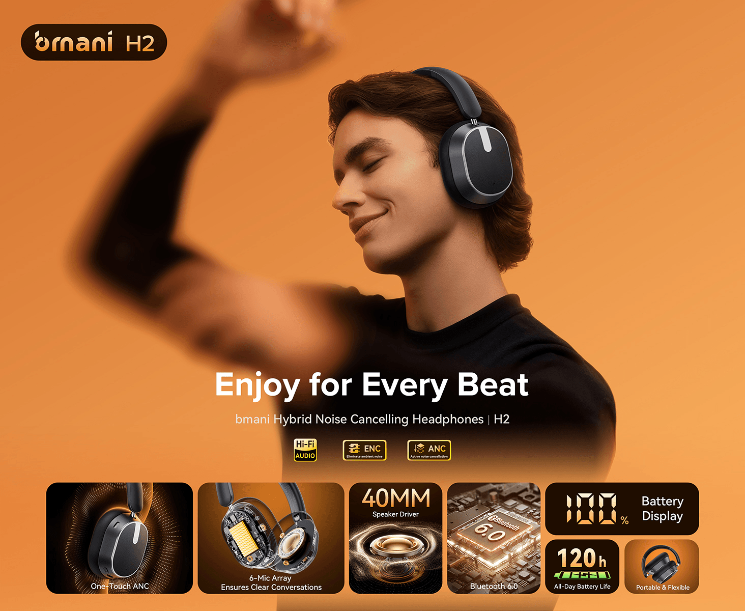 bmani Hybrid Active Noise Cancelling Over-Ear Headphones