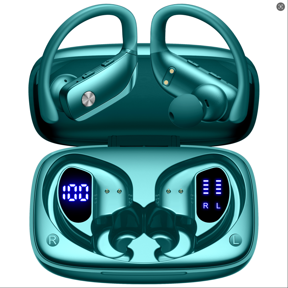 bmani Ear Buds Wireless Earbuds Bluetooth Headphones with 80H Playtime LED Display Case, Over-Ear Hook with Mic, Stereo Sound, Easy Button Controls, Sports Earphones for Running Workout Gym Green