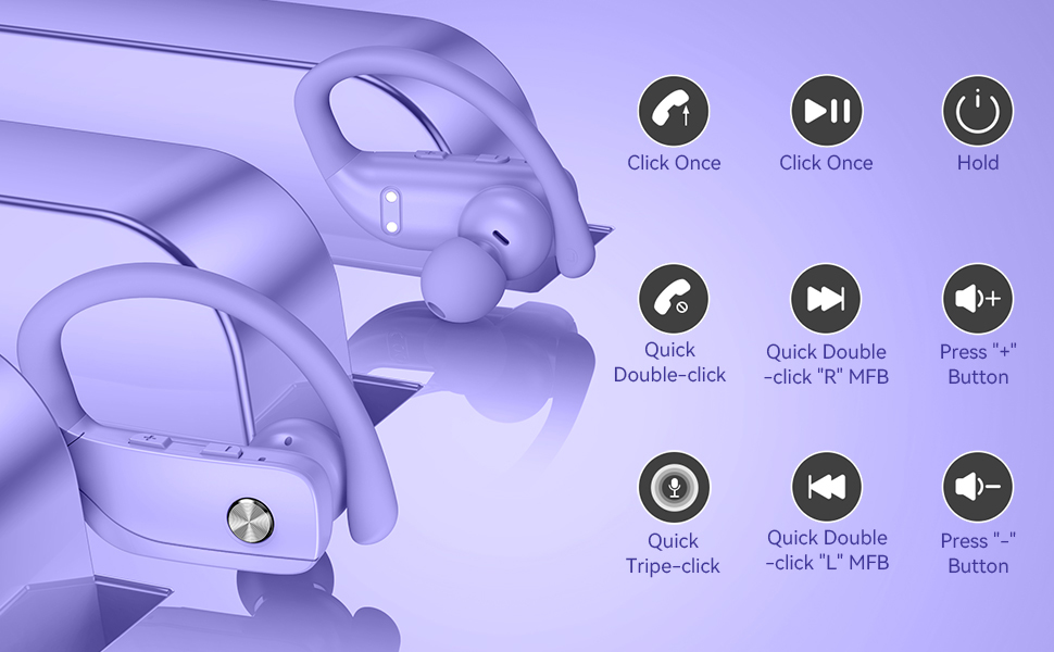 bmani Ear Buds Wireless Earbuds Bluetooth Headphones with 80H Playtime LED Display Case, Over-Ear Hook with Mic, Stereo Sound, Easy Button Controls, Sports Earphones for Running Workout Gym Purple